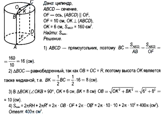 высота цилиндра равна 16 см на расстоянии 6см от оси цилиндра проведено сечение параллельные оси цилиндра и имеющие.